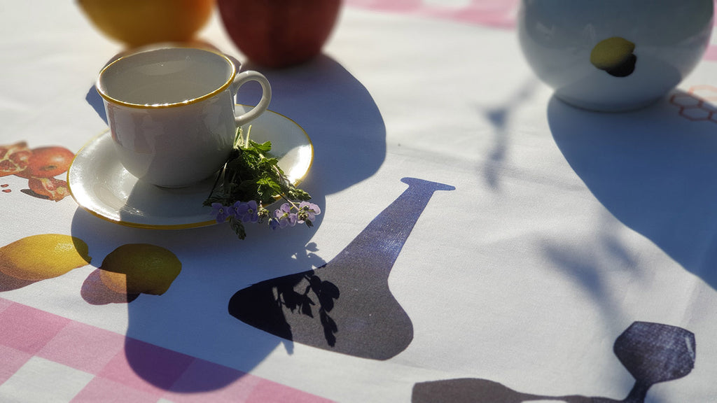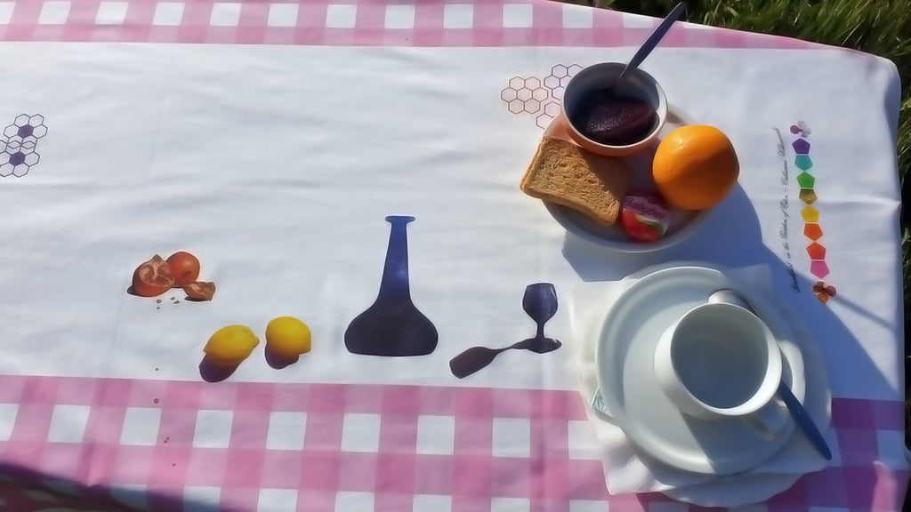 Ontwerp uit de collectie ‘Breakfast in the Garden of Eden’: een verhaal waarin 2 geliefden elkaar terug ontmoeten in hun paradijs en genieten van een heerlijk ontbijt, brunch, picnic, diner... Geniet van het leven!